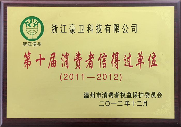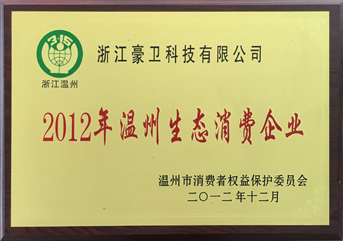 2012年溫州生態消費企業 樂清市第九屆消費者信得過單位 樂清市第十屆消費者信得過單位